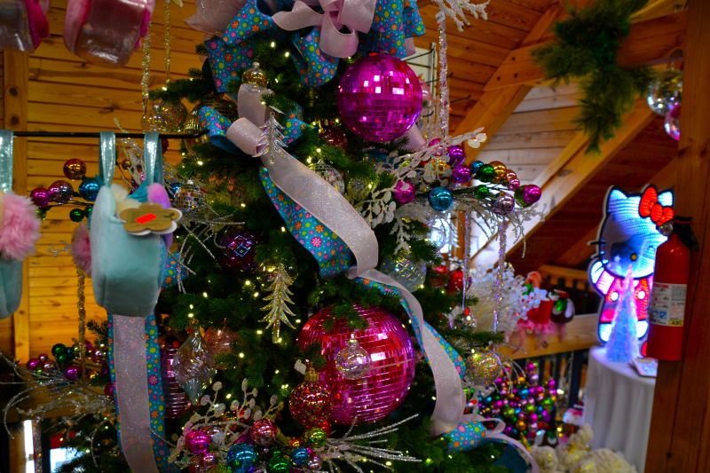 It features beautifully decorated custom trees with many different styles for your enjoyment…such as Woodland, Snowman, Natural Tones & Santa!! …it even has a polar bear display!