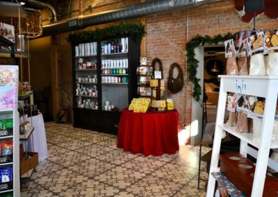 You look around and see the interior of the former bank… Exposed brick walls and the intricate little tiles of the original floor. Look to your right… And wow! You see chocolate! Truffles,chocolate turtles, cheesecake and everything your sweet tooth could possibly desire!!