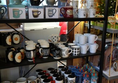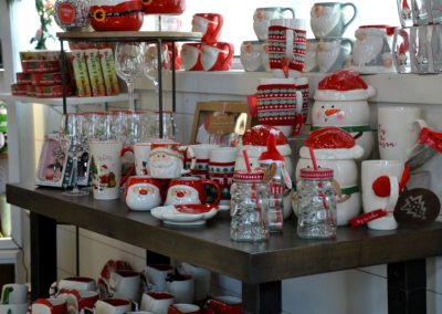 Grab a cup of coffee and a sweet treat and wander around shopping for holiday snacks, serveware, napkins, glasses and more…