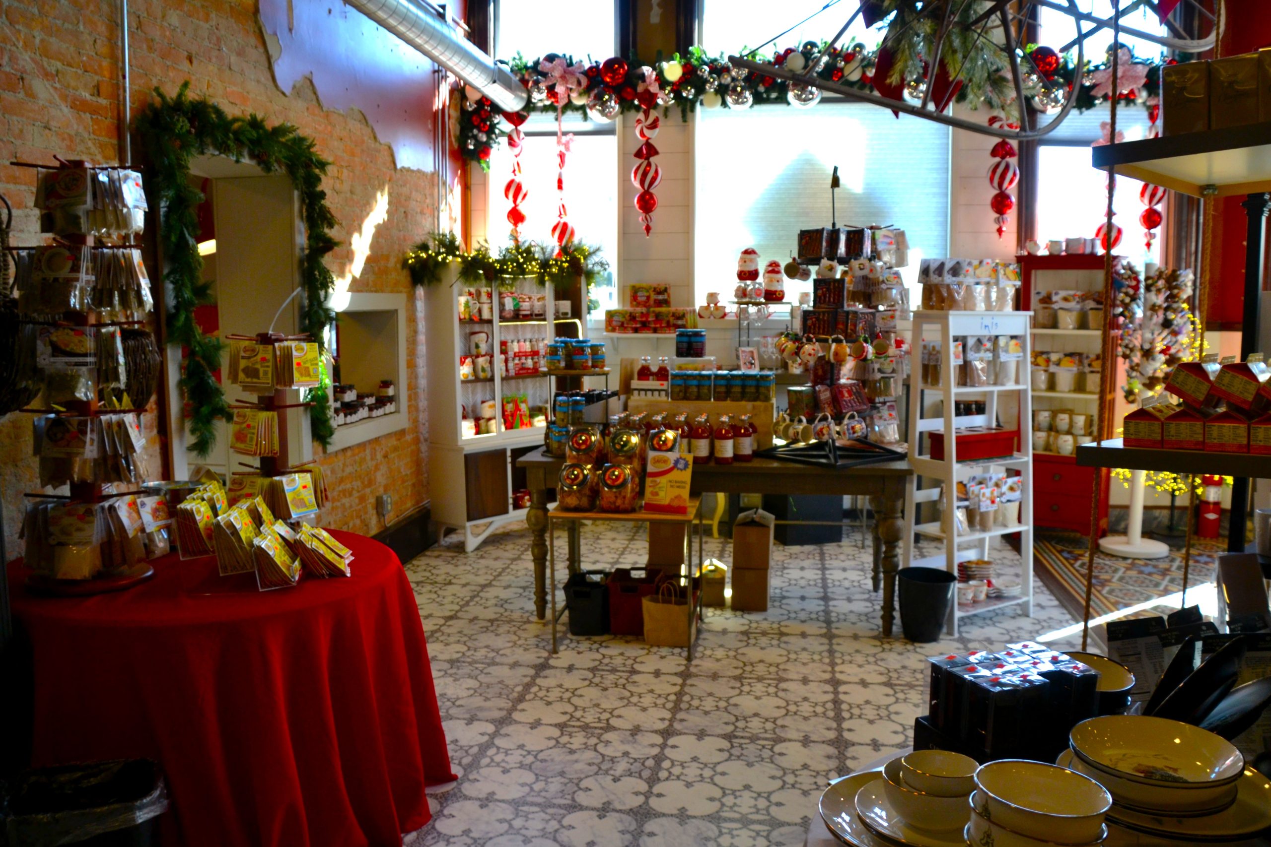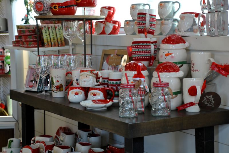 Grab a cup of coffee and a sweet treat and wander around shopping for holiday snacks, serveware, napkins, glasses and more…