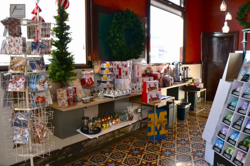 You look around and see the interior of the former bank… Exposed brick walls and the intricate little tiles of the original floor. Look to your right… And wow! You see chocolate! Truffles,chocolate turtles, cheesecake and everything your sweet tooth could possibly desire!!